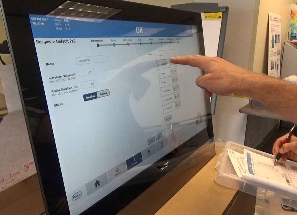 This prototype represents an antibody-producing machine interface. It served as an initial, low-fidelity visualization of user interactions, allowing for quick feedback before advancing to more detailed designs.Physical Prototype – Pall Corporation: