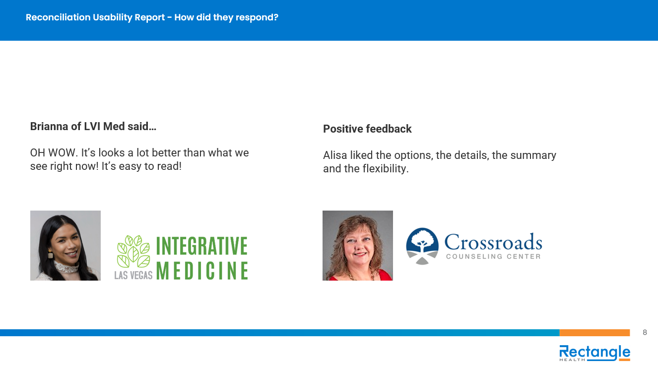 On the right is an example from Rectangle Health, where I conducted user interviews to gather complaints and frustrations. After identifying pain points, I presented a viable solution to users and gathered their reactions. This iterative process ensured the solution addressed their needs effectively and aligned with their expectations.