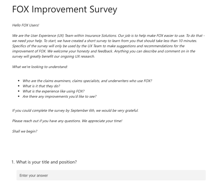 Survey for User Feedback - Developed for United Healthcare to collect actionable insights directly from users, helping to inform design and process improvements.