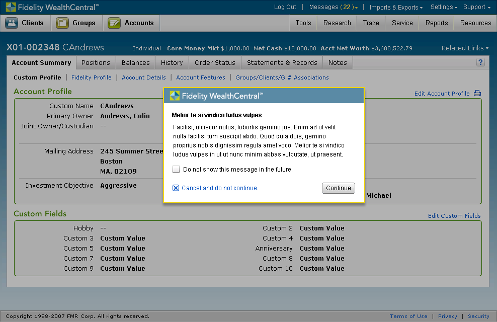 As a Visual Designer, I designed user flows for investment and retirement products, attention to reducing clutter, simplifying user paths, and helping establish better ways of using notifications alerting the user of items needing their immediate attention. There was some rapid prototyping sessions as well.
