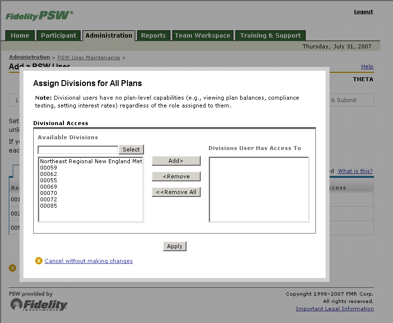 Products: NetBenefits, PSW, StreetScape, CCW, myPlan, Wealth Central