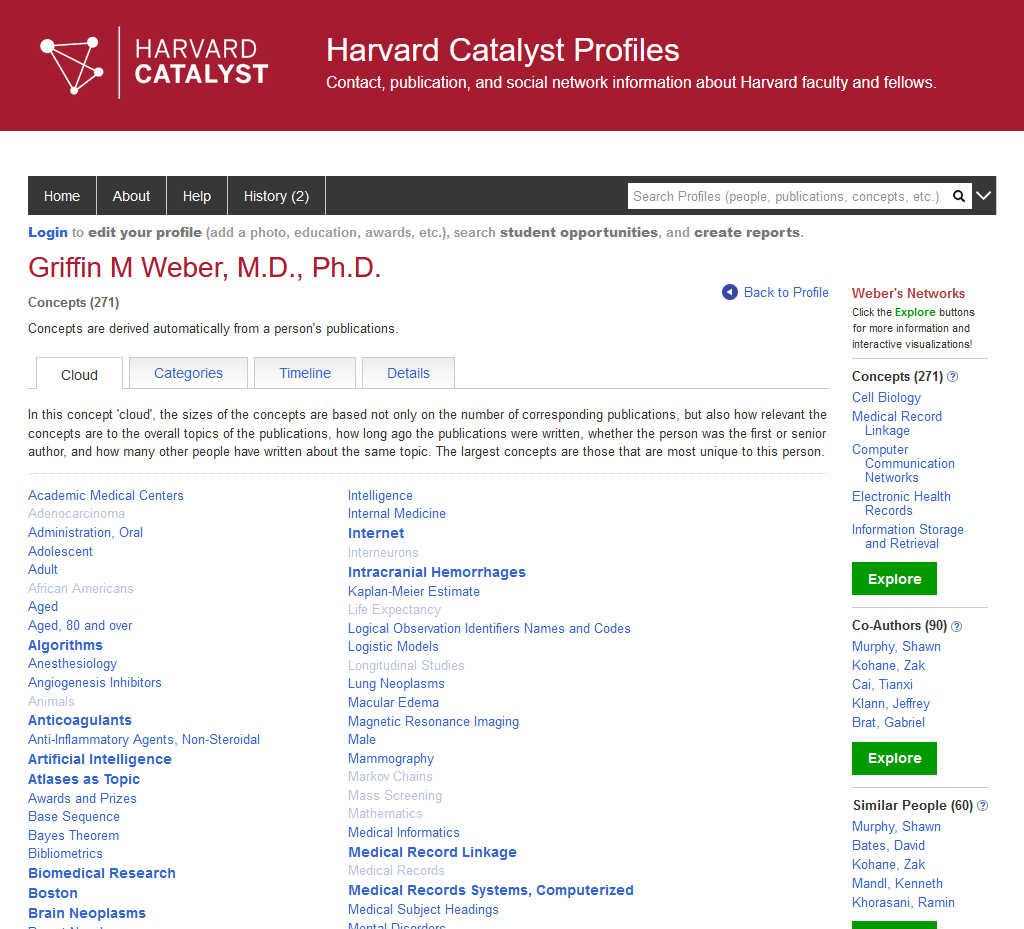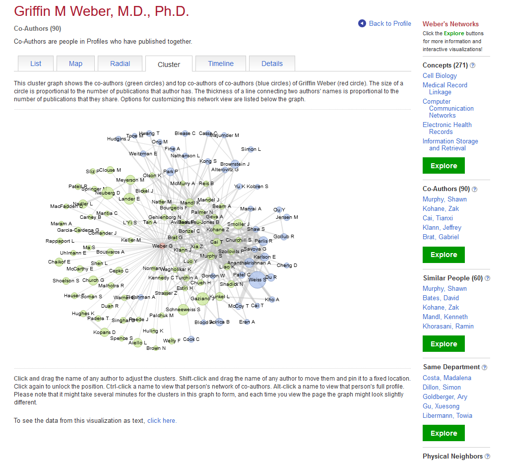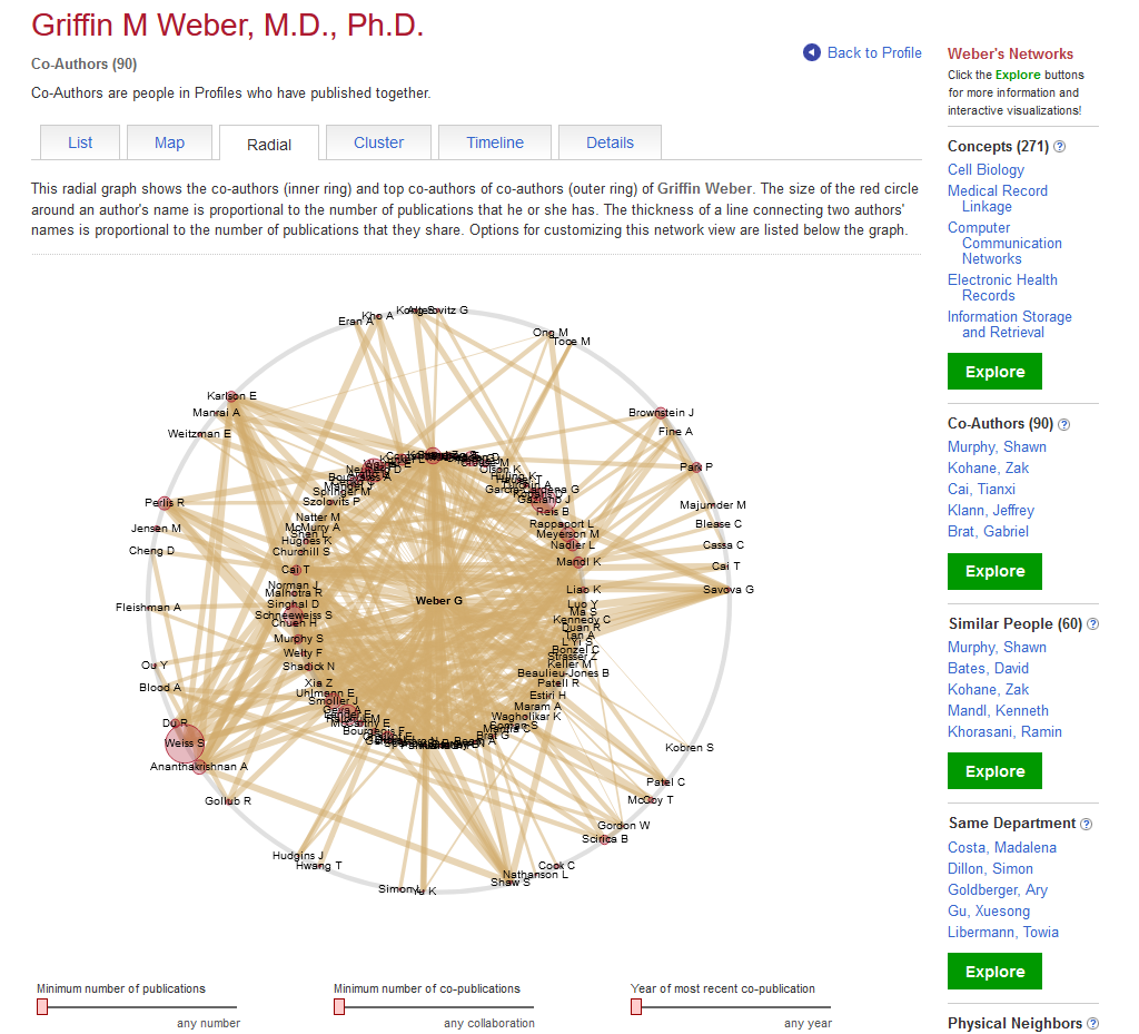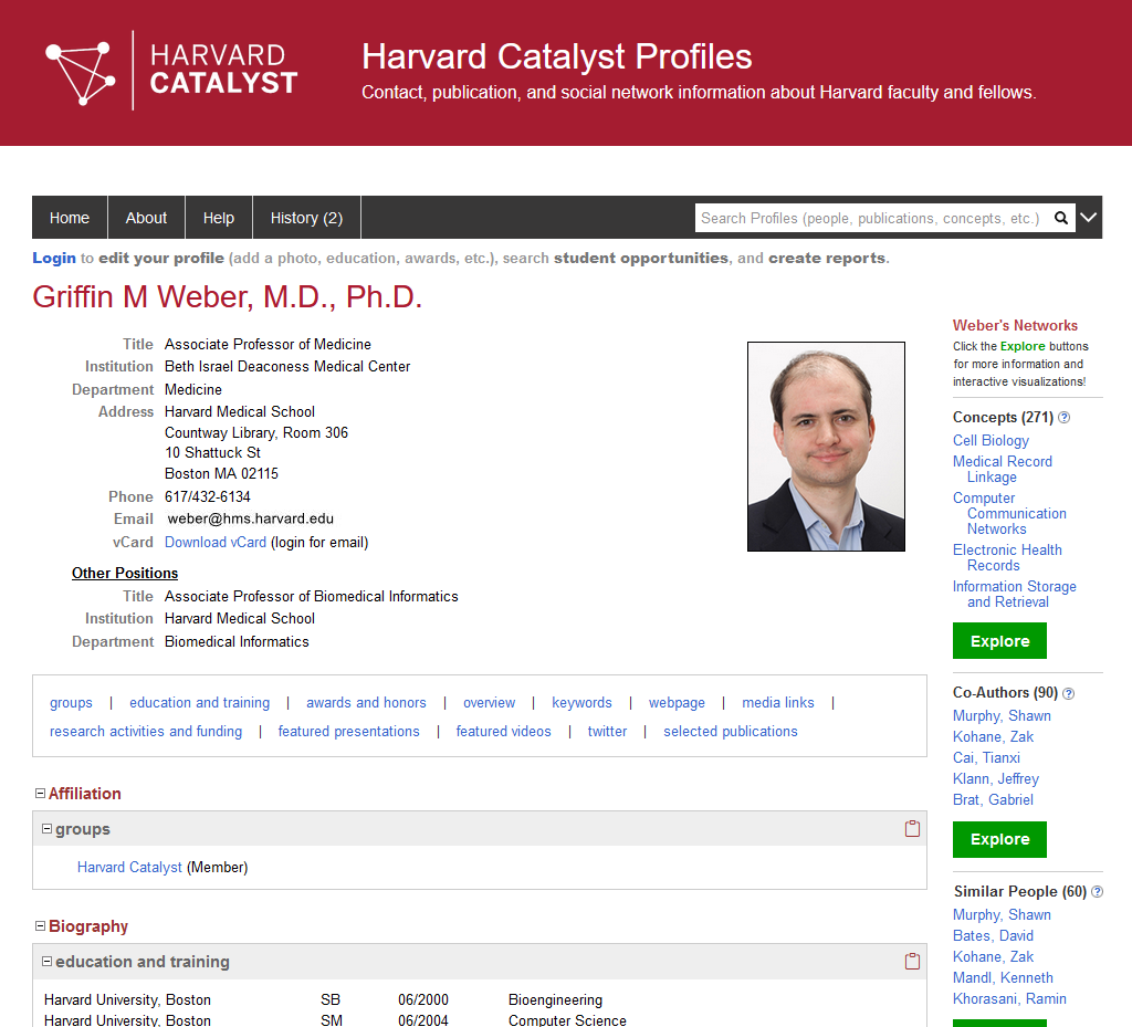In 2008 Harvard Medical School's Chief Technical Officer, Dr. Griffin Weber realized that with researchers spread throughout different departments and hospitals, "it could be challenging to find all the people working in your area—people with whom you might want to collaborate." (Nadis)