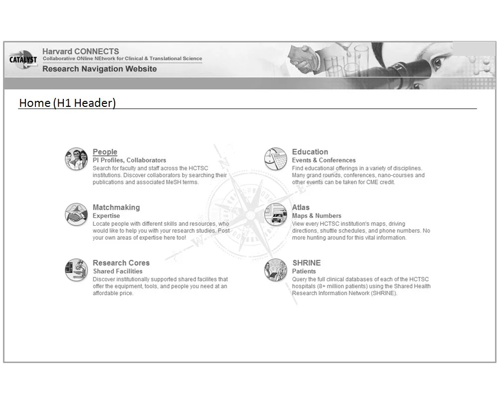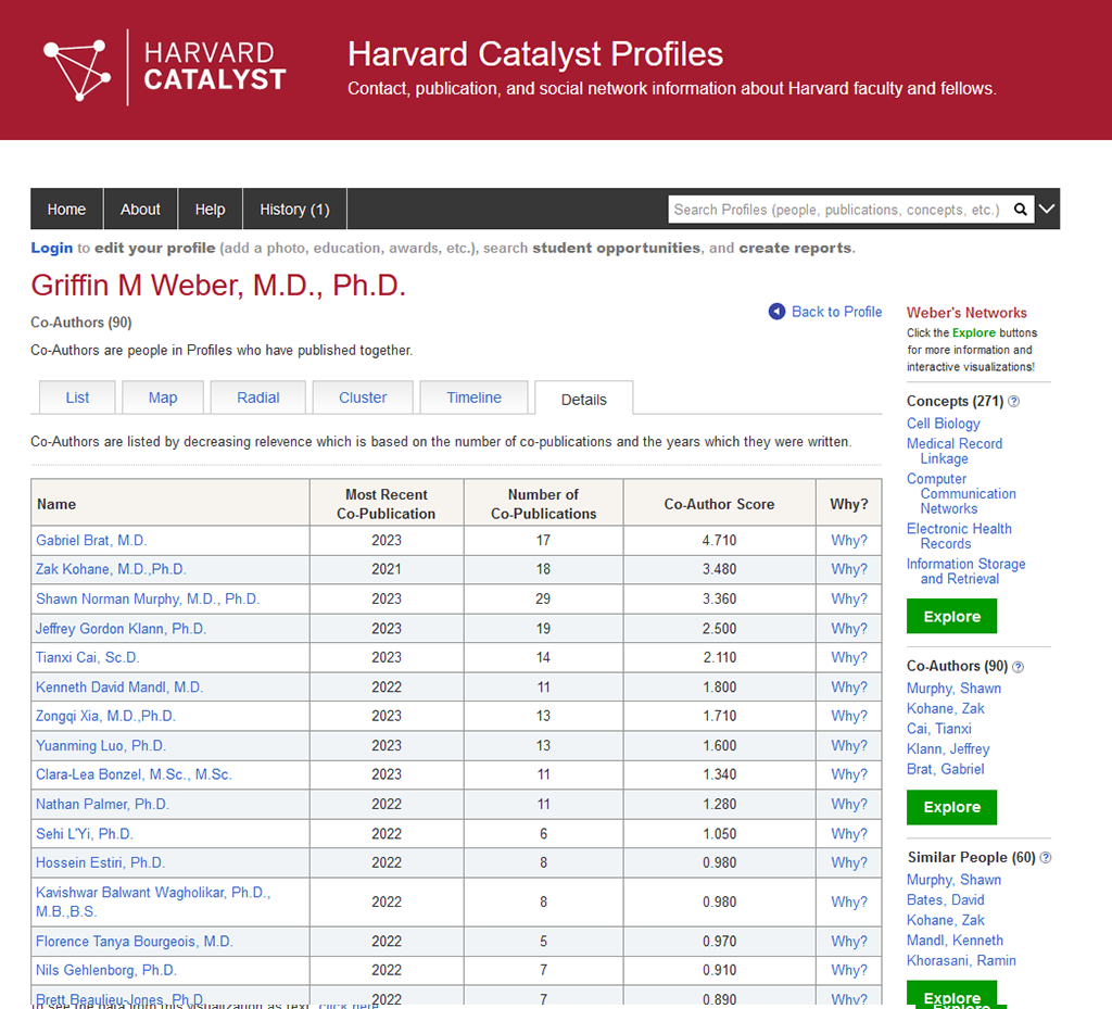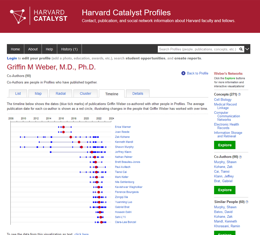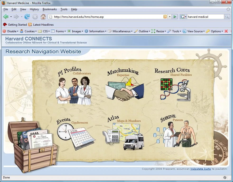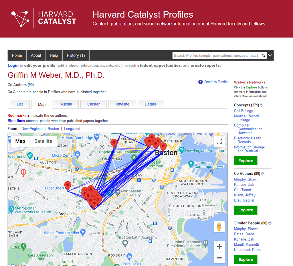 In 2008 Harvard Medical School's Chief Technical Officer, Dr. Griffin Weber realized that with researchers spread throughout different departments and hospitals, "it could be challenging to find all the people working in your area—people with whom you might want to collaborate." (Nadis)