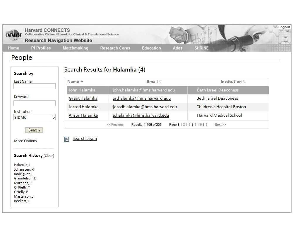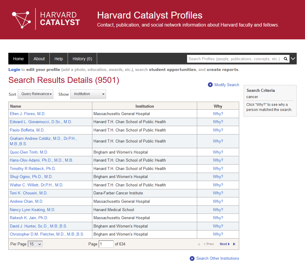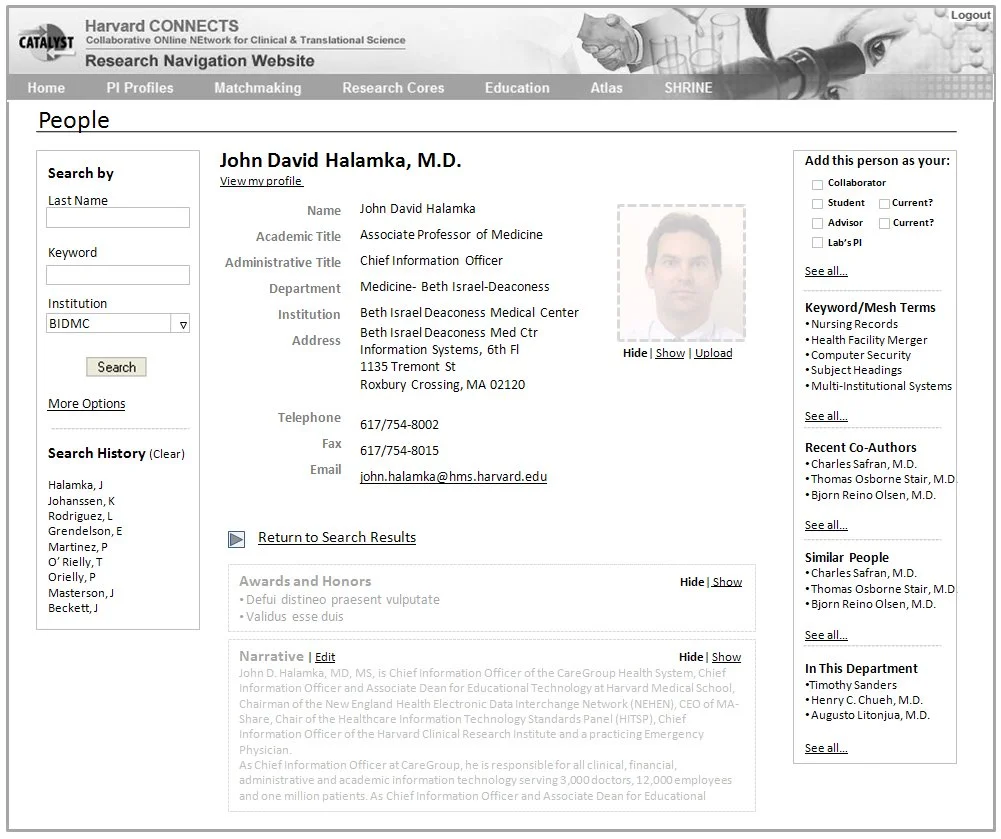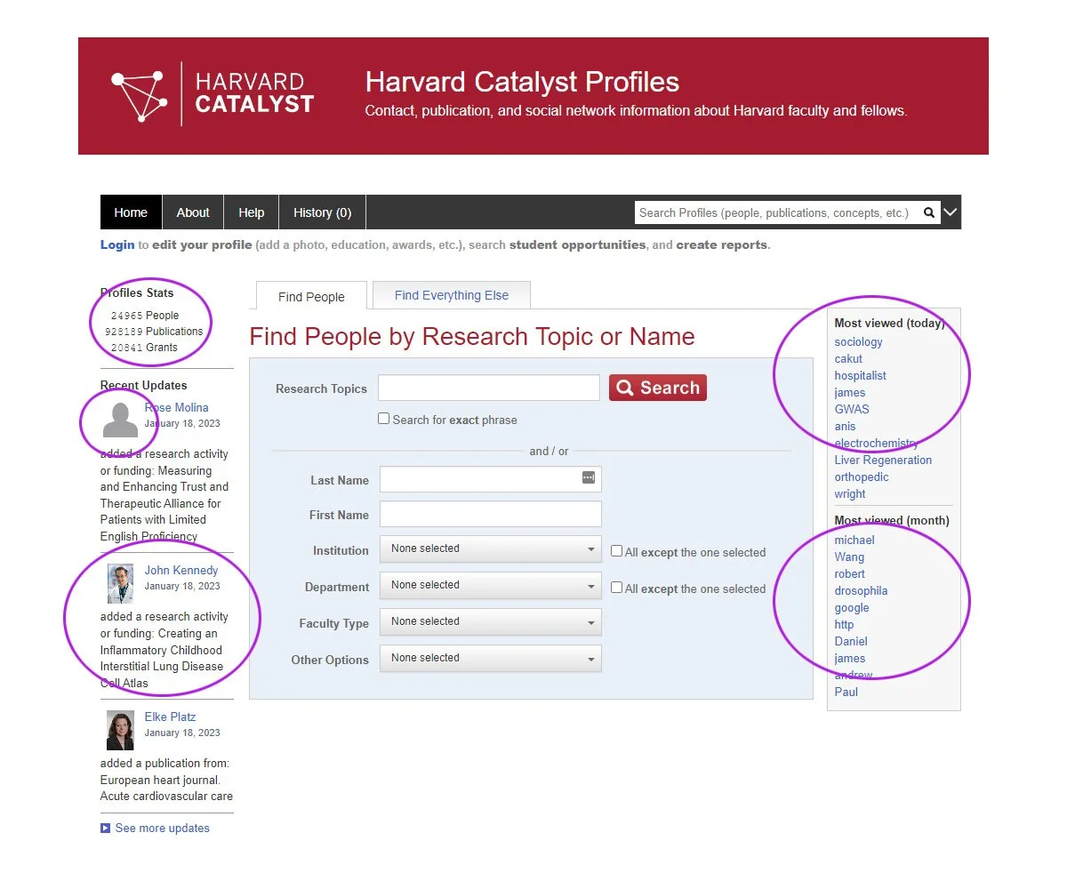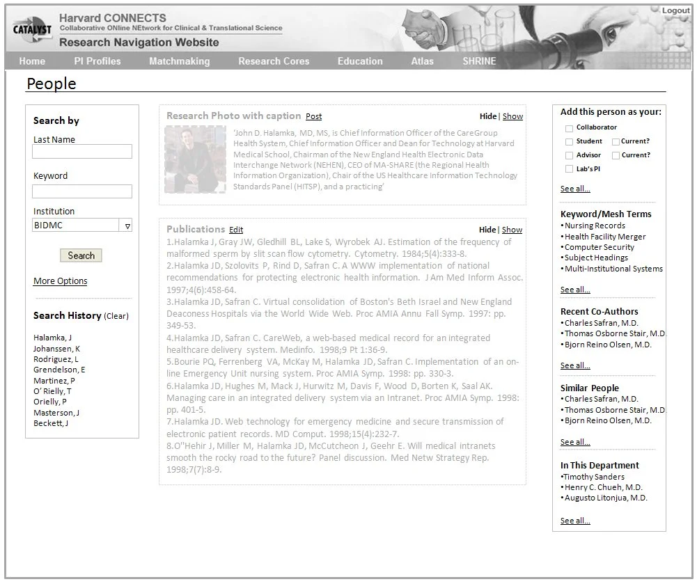 The National Institute of Health (NIH) funded Harvard Medical School in the latter half of 2008 to create Harvard Catalyst Profiles. Our initial goal was to develop a pilot for an open-source data mining tool dedicated to advancing human health by supporting clinical and translational science.